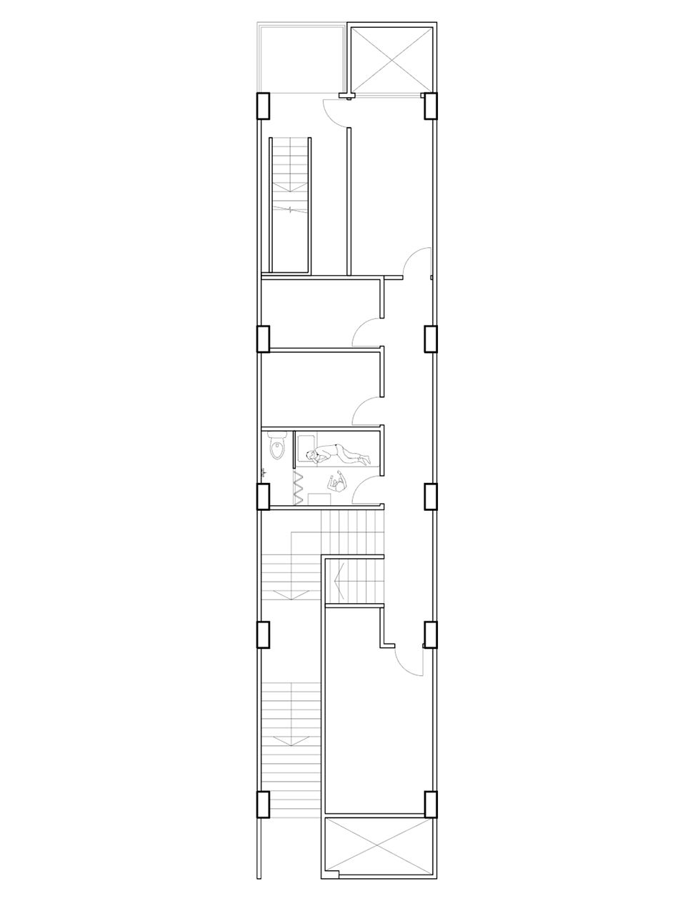 These rooms are leftover spaces, often windowless, measuring the size of a massage bed and a shower. They are both public and private, domestic and business-focused, and they are nestled in walk-up buildings, residential units, and commercial blocks in an endless landscape of domesticity, safety, segregation, and resistance.